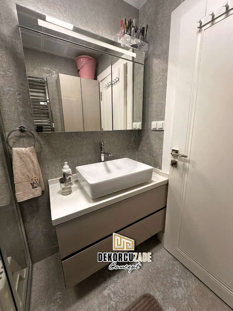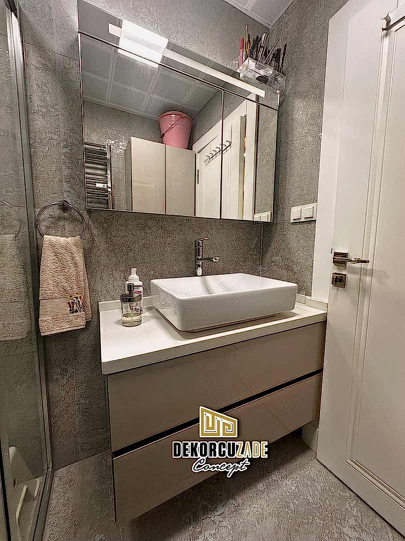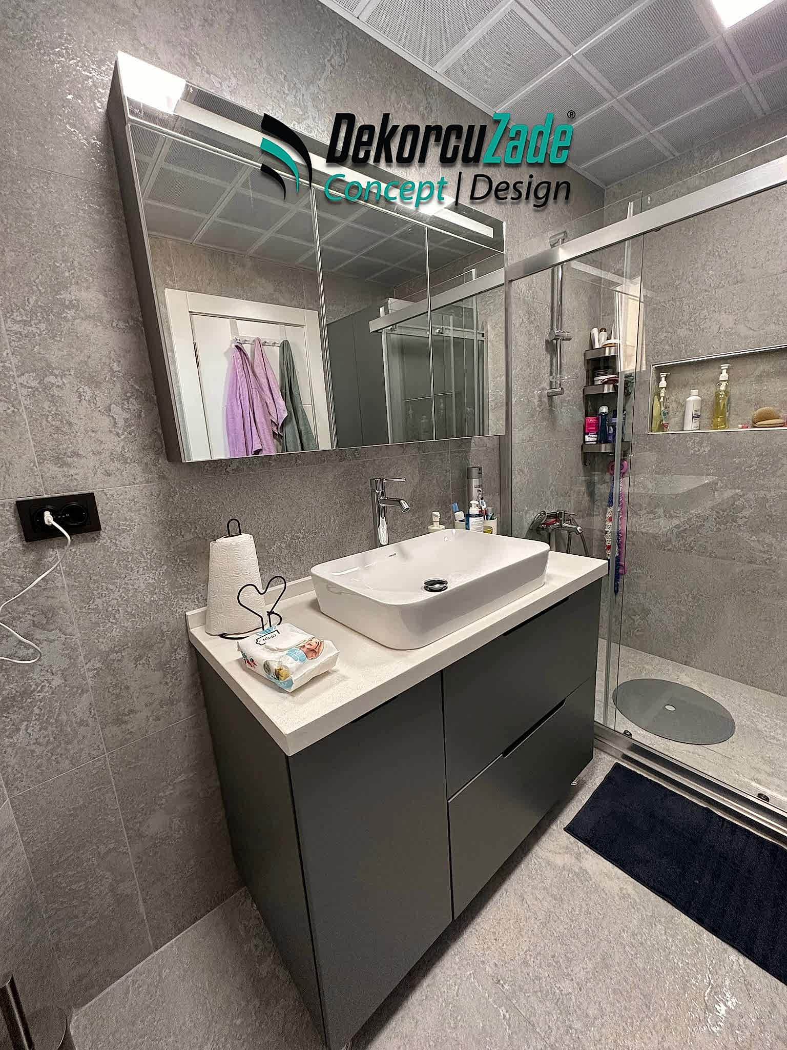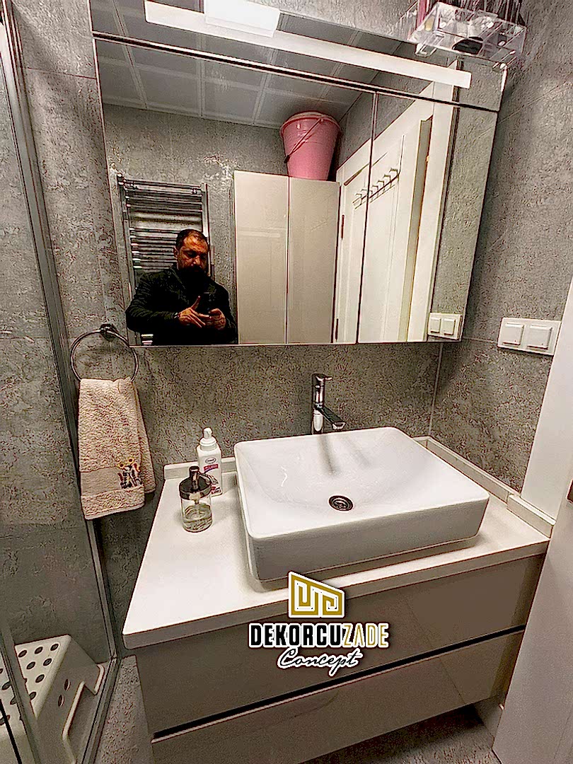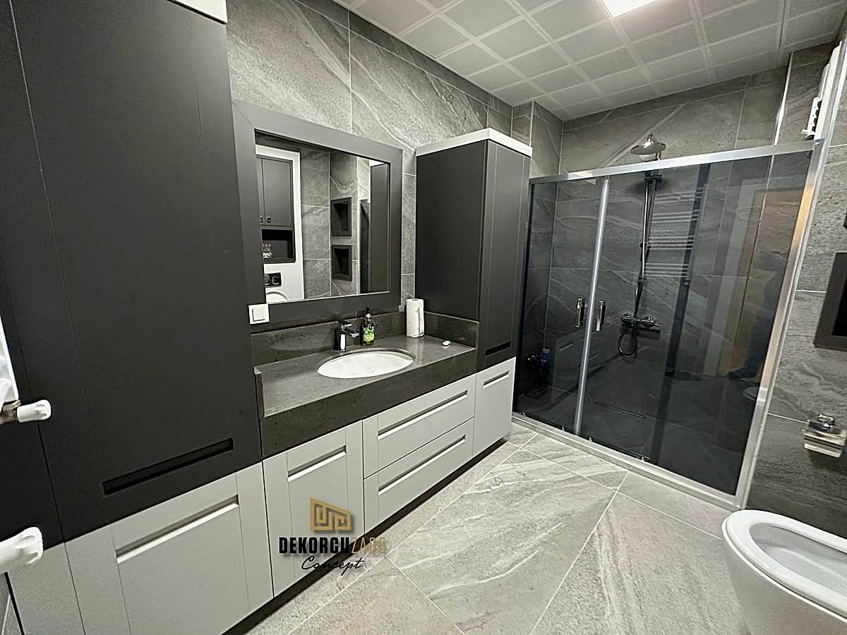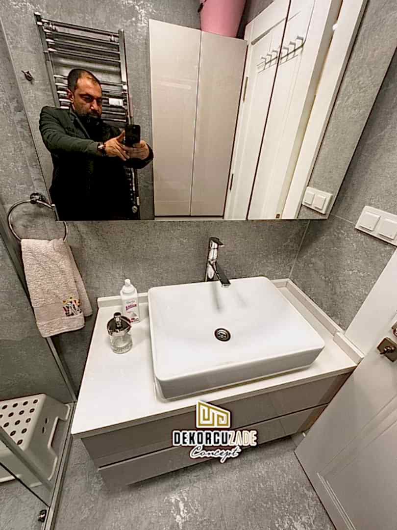 Biz DekorcuZade Concept olarak fabrikalarımızda sadece banyo dolabı üretimi yapmakla kalmıyor, bunun yanında uzman tadilat ekibimizle birlikte banyonuzun tüm ihtiyaçlarını tek bir elden karşılıyoruz. Profesyonel ve kendi bünyemizdeki ekiplerimizle, banyonuzda ihtiyaç duyulan tüm fayans işleri, tesisat işleri, tavan ve zemin uygulamalarını gerçekleştiriyoruz. Üstelik musluğunuza kadar takıp teslim ediyoruz, böylece müşterilerimize tam anlamıyla anahtar teslim bir hizmet sunuyoruz.