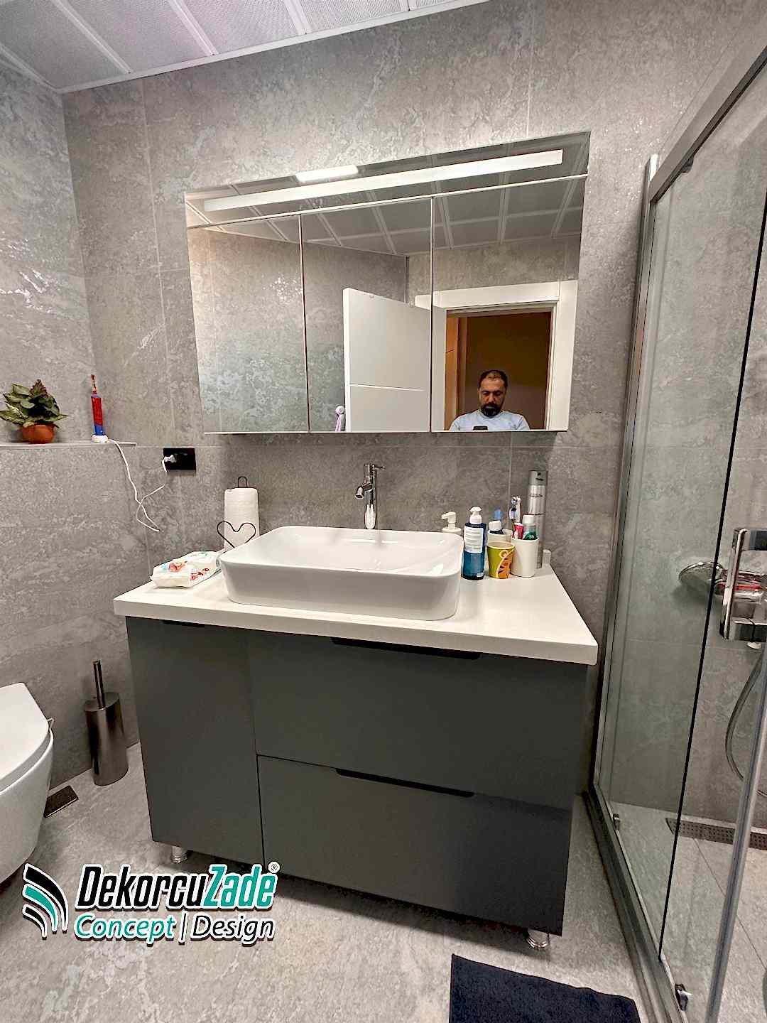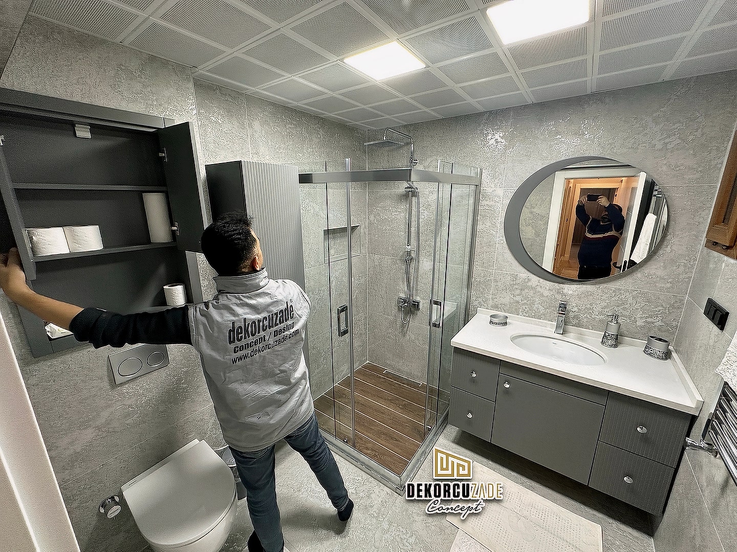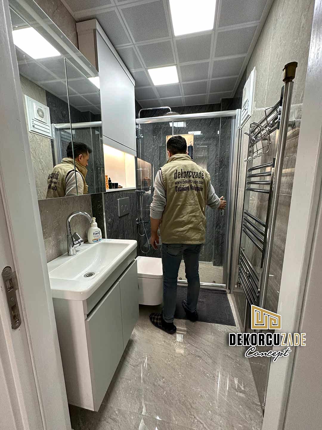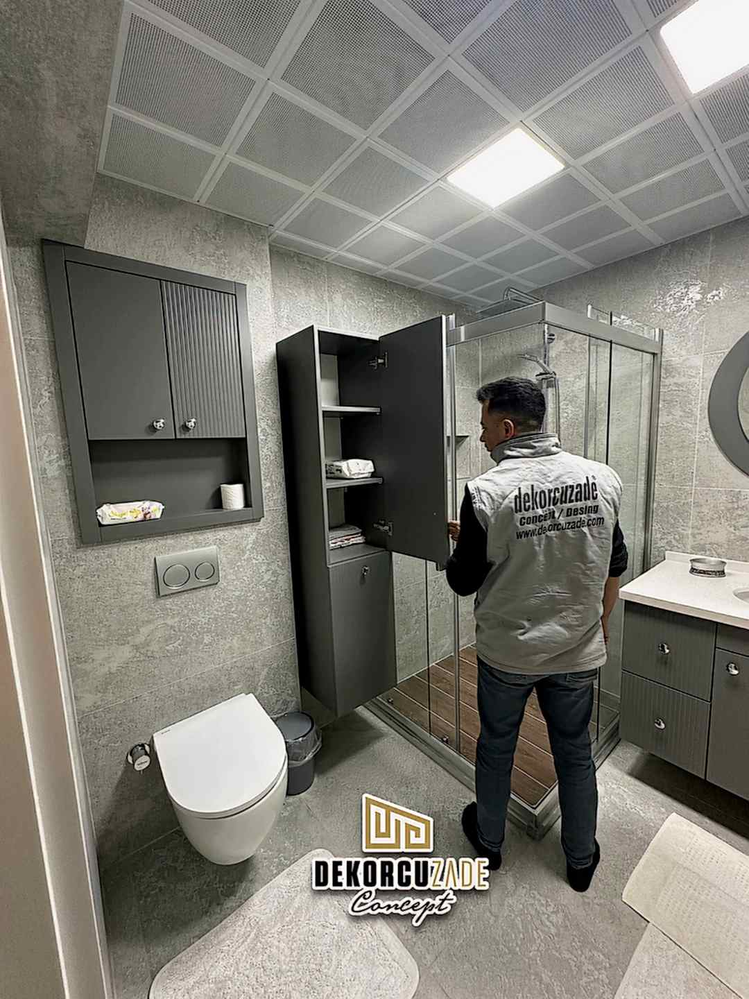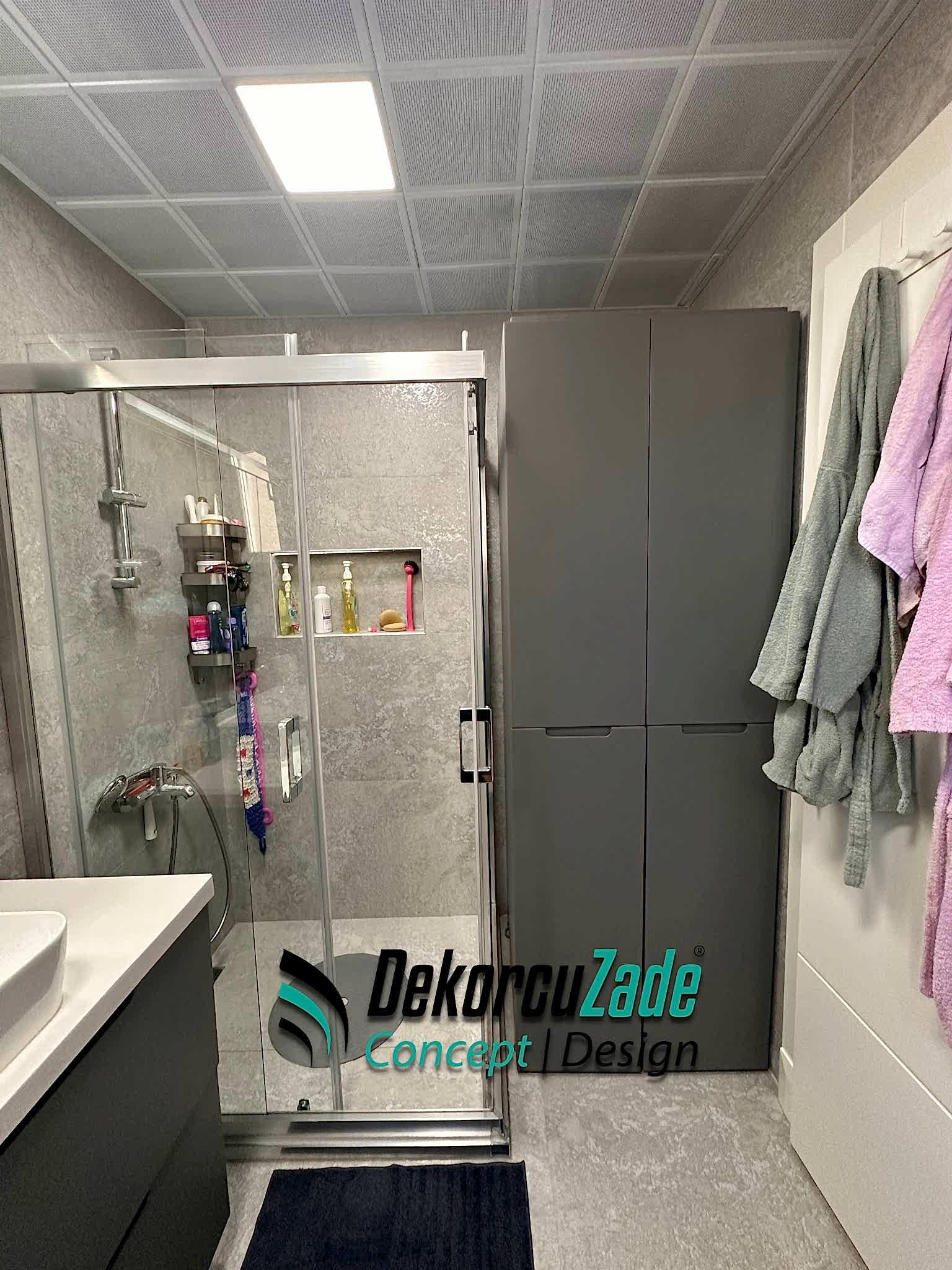 Biz DekorcuZade Concept olarak fabrikalarımızda sadece banyo dolabı üretimi yapmakla kalmıyor, bunun yanında uzman tadilat ekibimizle birlikte banyonuzun tüm ihtiyaçlarını tek bir elden karşılıyoruz. Profesyonel ve kendi bünyemizdeki ekiplerimizle, banyonuzda ihtiyaç duyulan tüm fayans işleri, tesisat işleri, tavan ve zemin uygulamalarını gerçekleştiriyoruz. Üstelik musluğunuza kadar takıp teslim ediyoruz, böylece müşterilerimize tam anlamıyla anahtar teslim bir hizmet sunuyoruz.