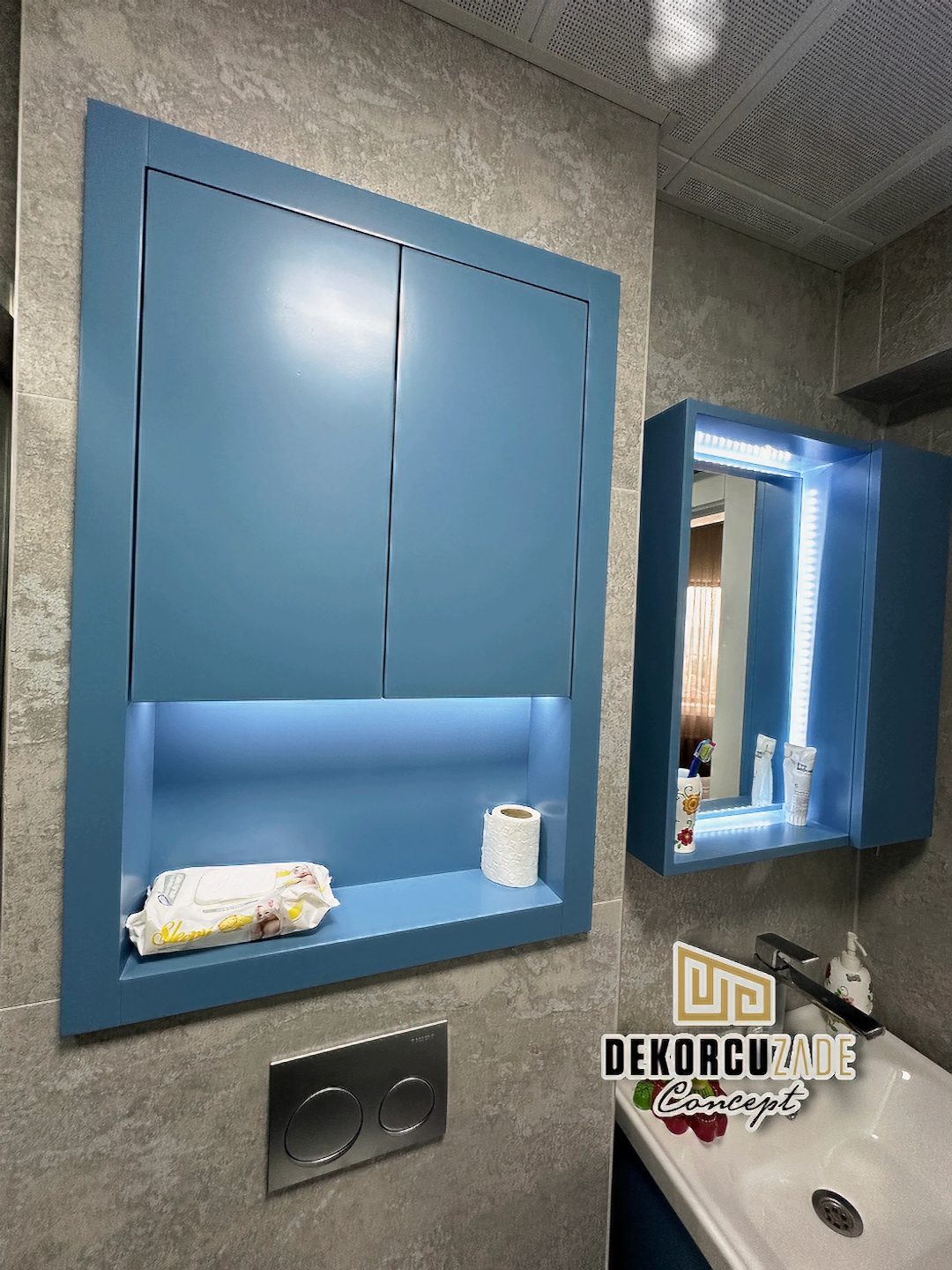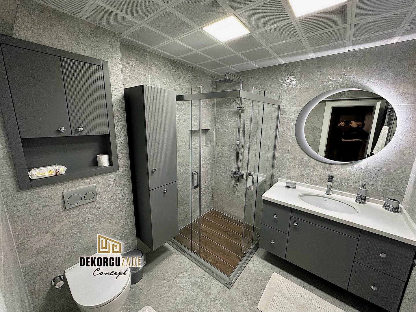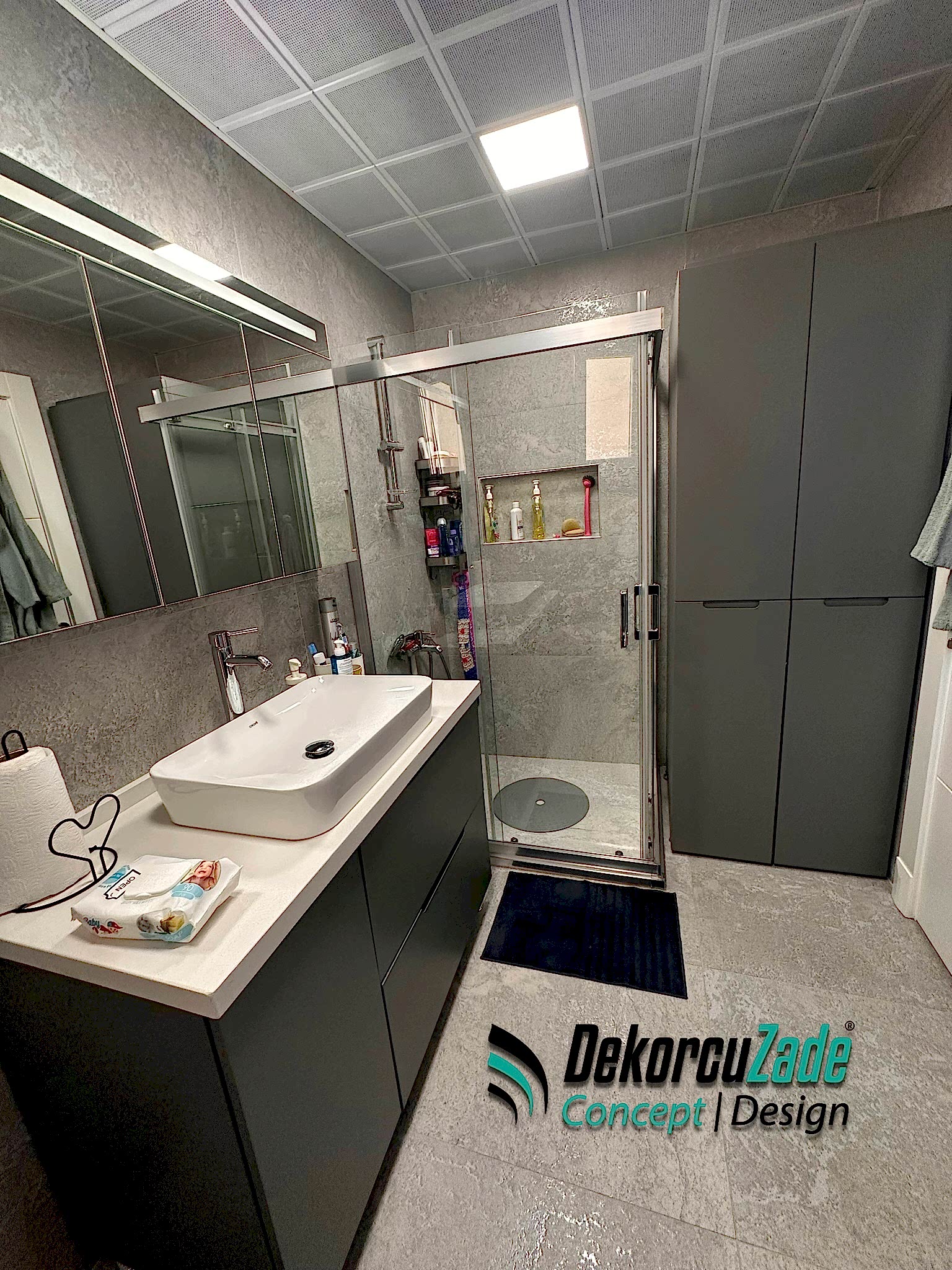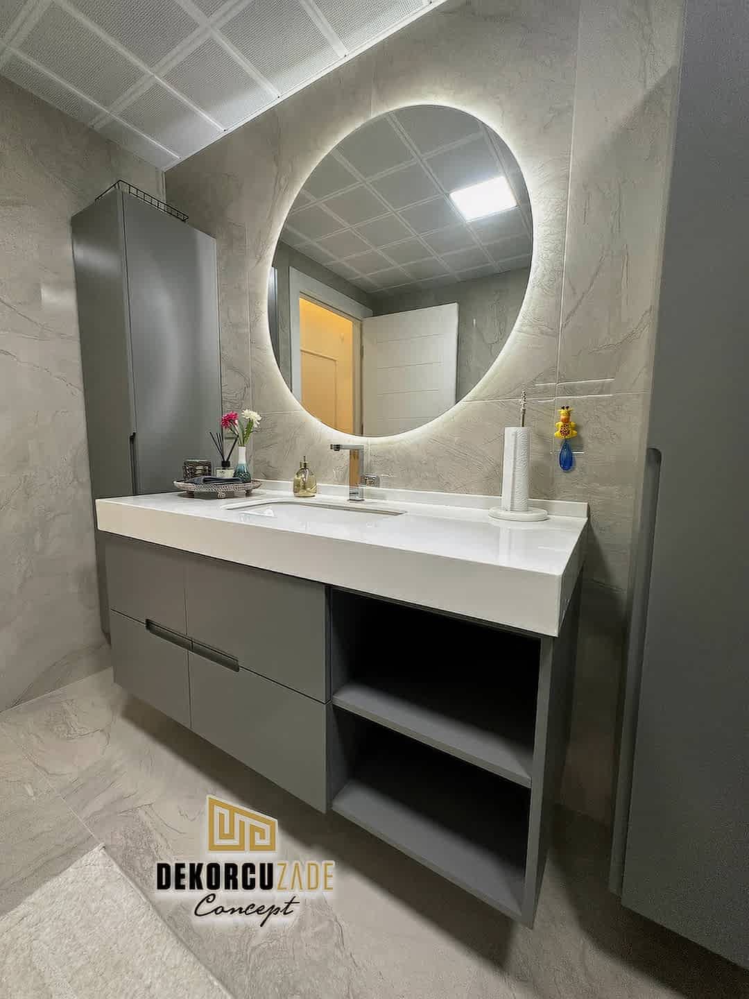 Biz DekorcuZade Concept olarak fabrikalarımızda sadece banyo dolabı üretimi yapmakla kalmıyor, bunun yanında uzman tadilat ekibimizle birlikte banyonuzun tüm ihtiyaçlarını tek bir elden karşılıyoruz. Profesyonel ve kendi bünyemizdeki ekiplerimizle, banyonuzda ihtiyaç duyulan tüm fayans işleri, tesisat işleri, tavan ve zemin uygulamalarını gerçekleştiriyoruz. Üstelik musluğunuza kadar takıp teslim ediyoruz, böylece müşterilerimize tam anlamıyla anahtar teslim bir hizmet sunuyoruz.