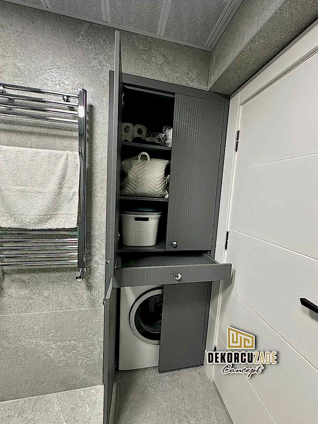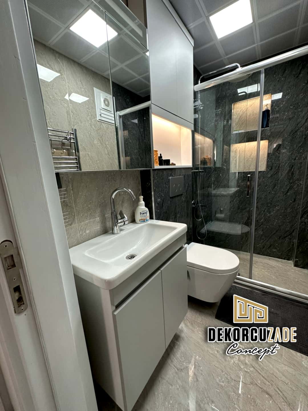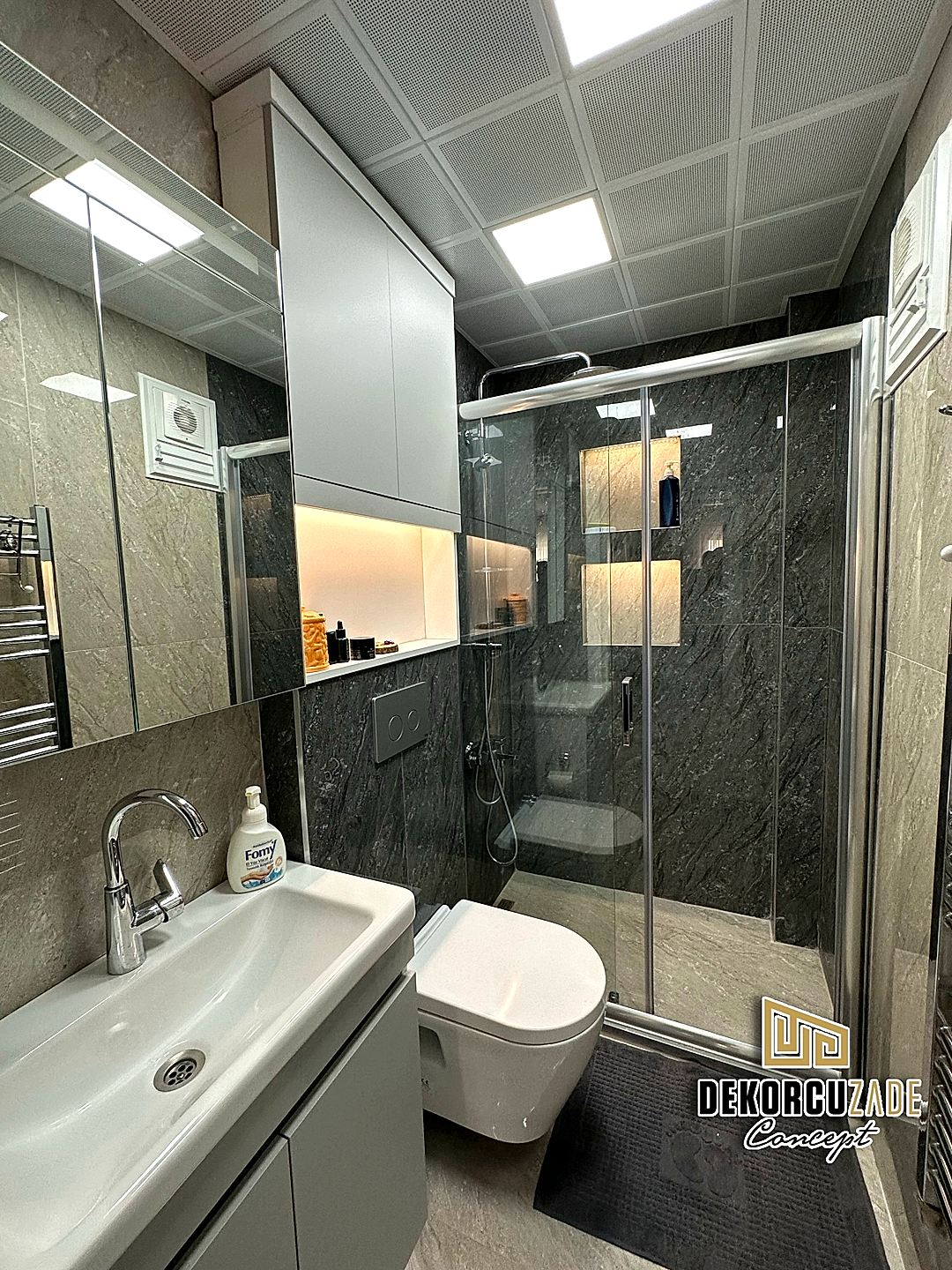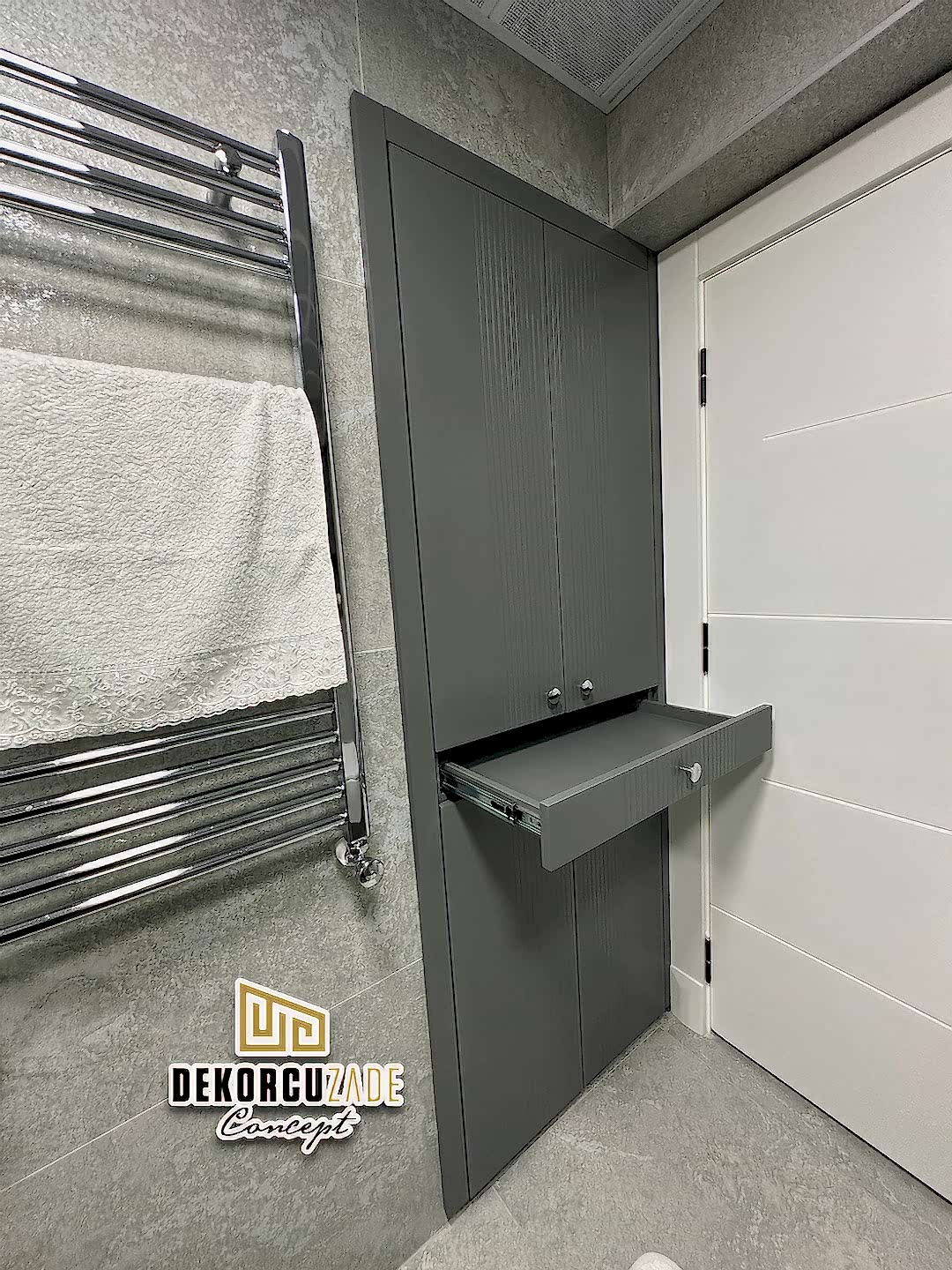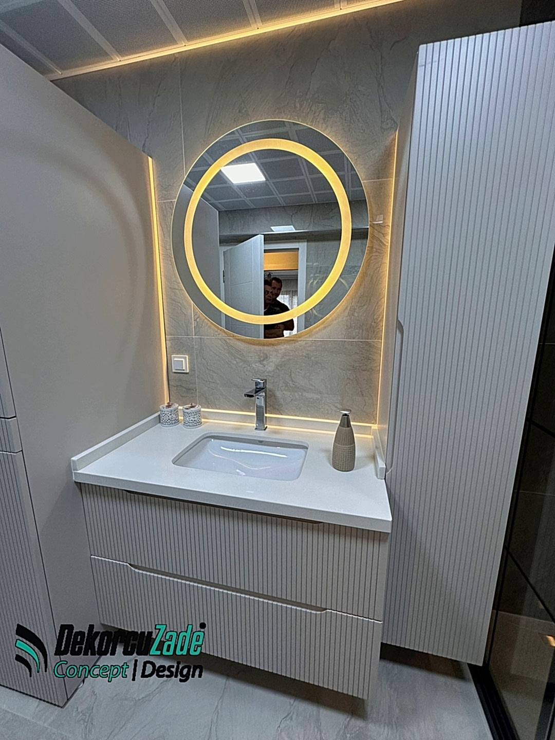 Biz DekorcuZade Concept olarak fabrikalarımızda sadece banyo dolabı üretimi yapmakla kalmıyor, bunun yanında uzman tadilat ekibimizle birlikte banyonuzun tüm ihtiyaçlarını tek bir elden karşılıyoruz. Profesyonel ve kendi bünyemizdeki ekiplerimizle, banyonuzda ihtiyaç duyulan tüm fayans işleri, tesisat işleri, tavan ve zemin uygulamalarını gerçekleştiriyoruz. Üstelik musluğunuza kadar takıp teslim ediyoruz, böylece müşterilerimize tam anlamıyla anahtar teslim bir hizmet sunuyoruz.