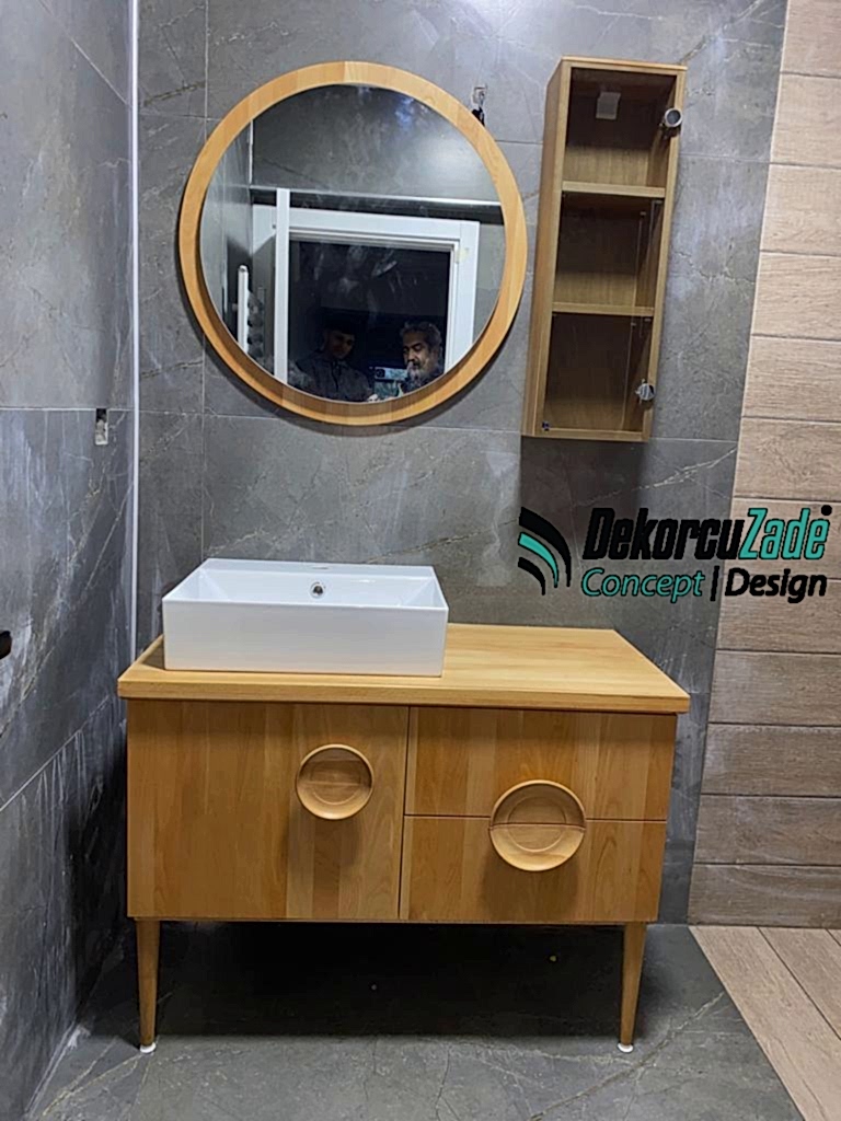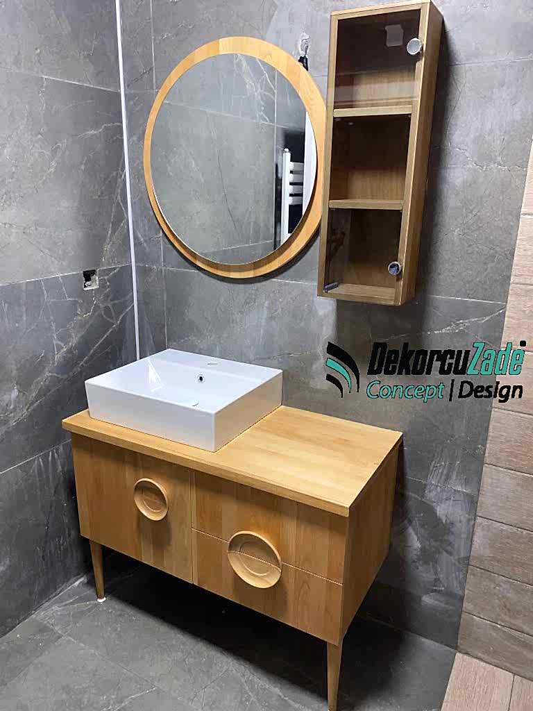 - Ahşap Banyo Dolabı: Doğal ve sıcak bir atmosfer yaratır.