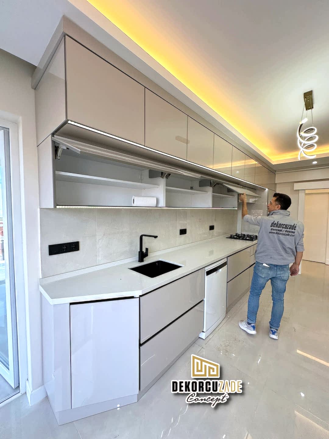 - Akrilik Mutfak Dolapları: Yüksek parlaklık ve dayanıklılık sunar. Çizilmelere karşı dirençlidir.