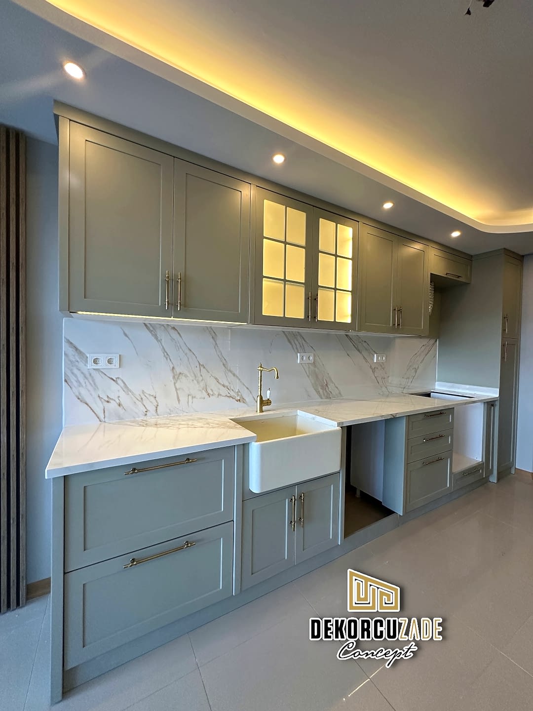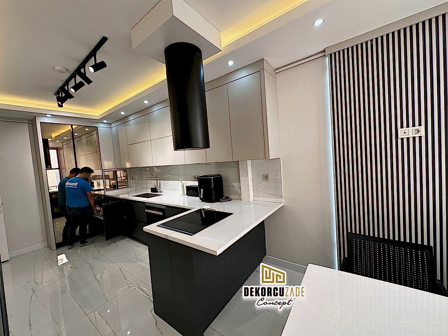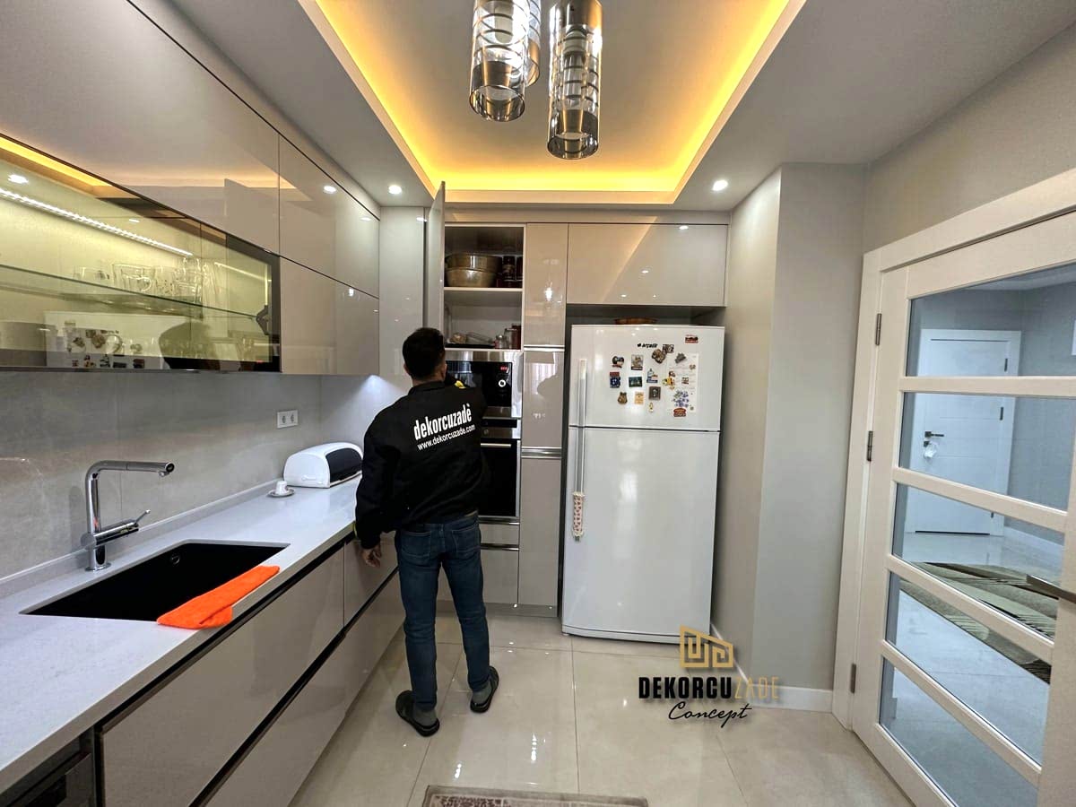 Firmamız, mutfak dolabını takıp gitmekle kalmaz; sizlere anahtar teslim dekorasyon hizmeti sunar. Tüm mobilyalar Siteler’de bulunan DekorcuZade fabrikalarında üretilir ve tadilat ekibi, DekorcuZade Mimarlığın kendi maaşlı personelidir. Dekorcuzade, sokaktan usta toplamaz ve hiçbir dalda aracı olmadan çalışan, tüm personelini kendi bünyesinde barındıran Türkiye’nin tek dekorasyon ve mutfak dolabı firmasıdır.