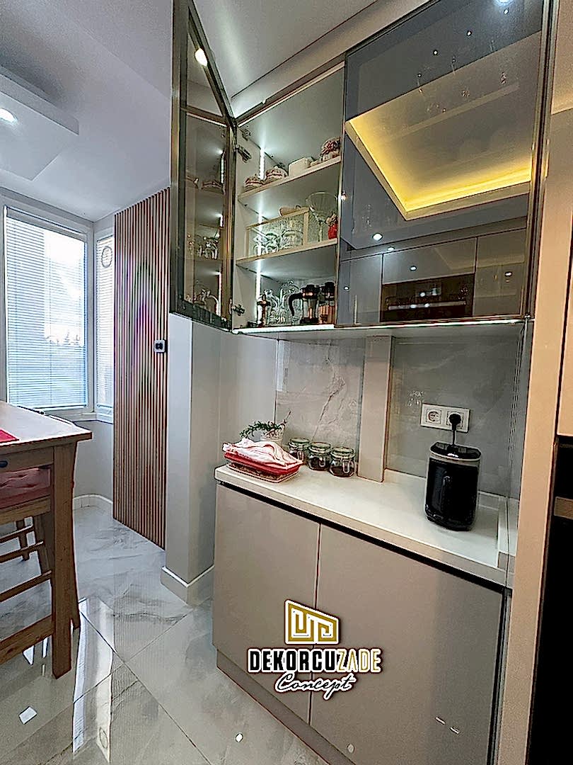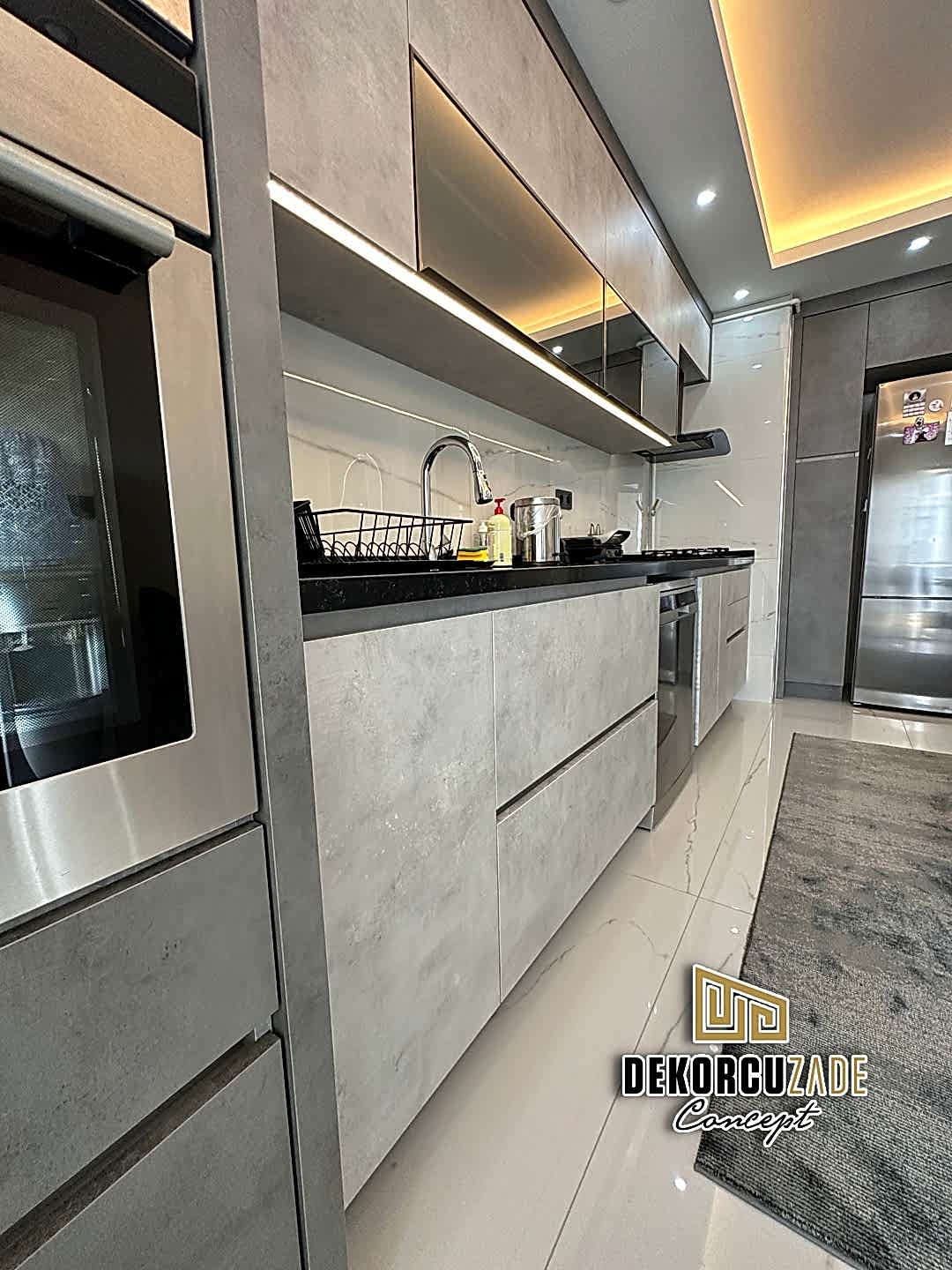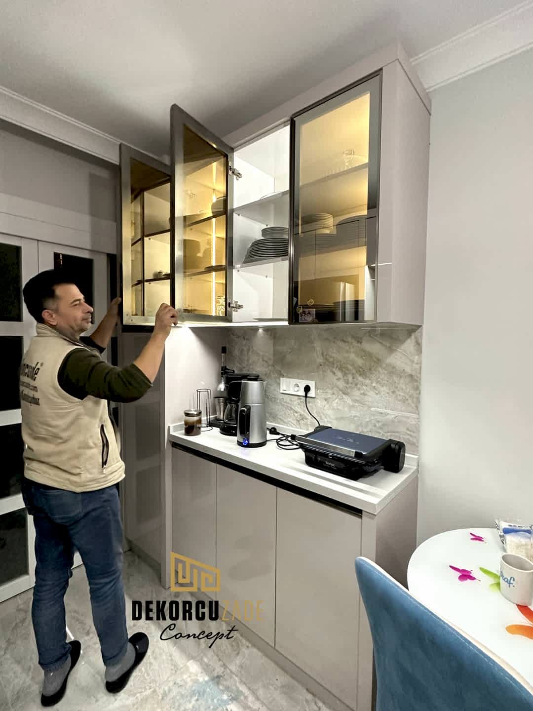 Firmamız, mutfak dolabını takıp gitmekle kalmaz; sizlere anahtar teslim dekorasyon hizmeti sunar. Tüm mobilyalar Siteler’de bulunan DekorcuZade fabrikalarında üretilir ve tadilat ekibi, DekorcuZade Mimarlığın kendi maaşlı personelidir. Dekorcuzade, sokaktan usta toplamaz ve hiçbir dalda aracı olmadan çalışan, tüm personelini kendi bünyesinde barındıran Türkiye’nin tek dekorasyon ve mutfak dolabı firmasıdır.