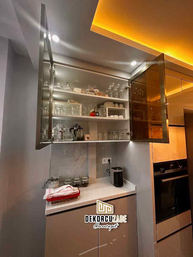 - Cam Kapaklar: Mutfak dolaplarında cam kapaklar kullanmak, hem şık hem de işlevsel bir dekorasyon seçeneği sunar. Cam kapaklar, dolabın içerisini gözlemlemenizi sağlar ve dolabın dış görünümünü de süsler.