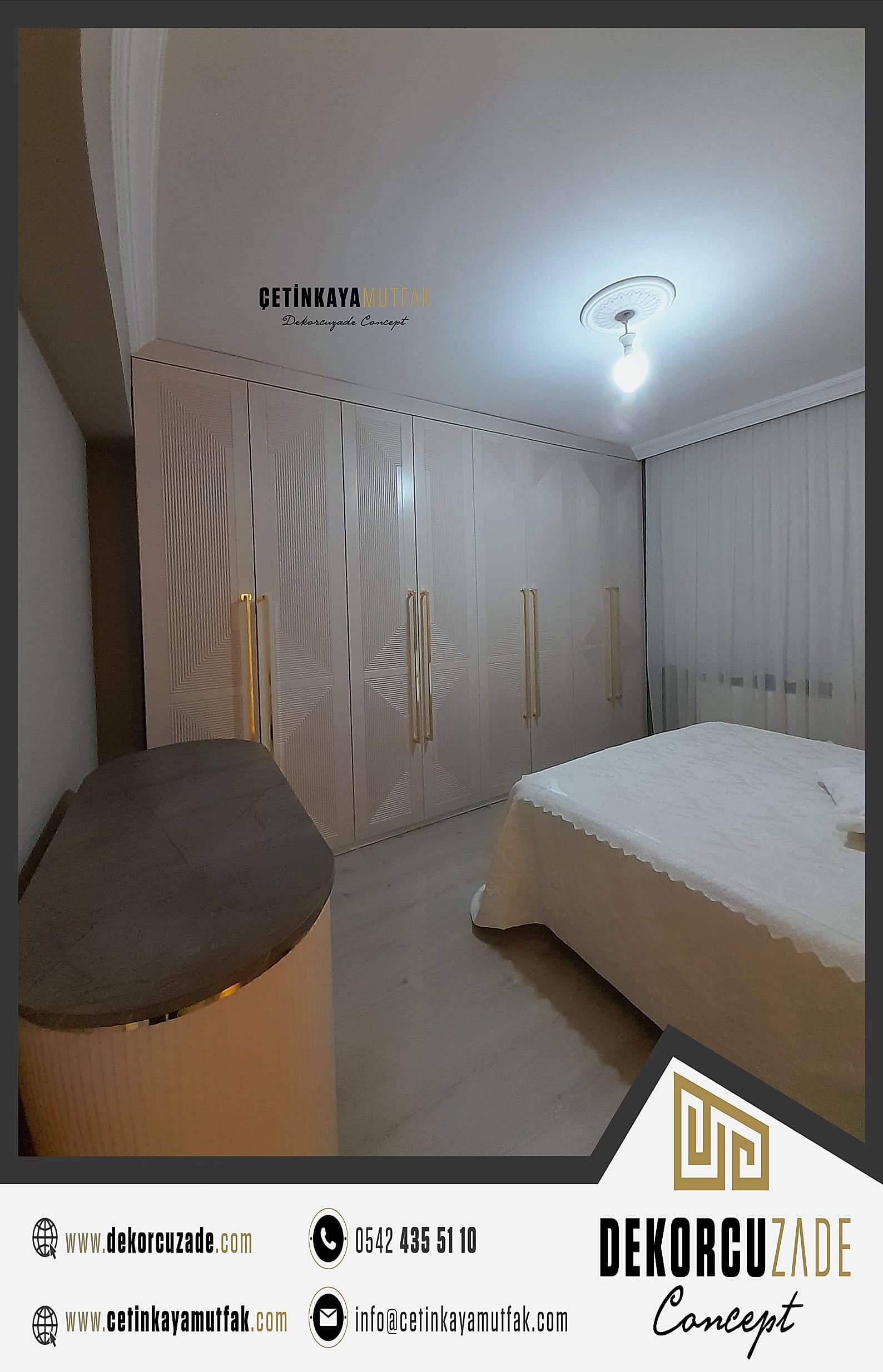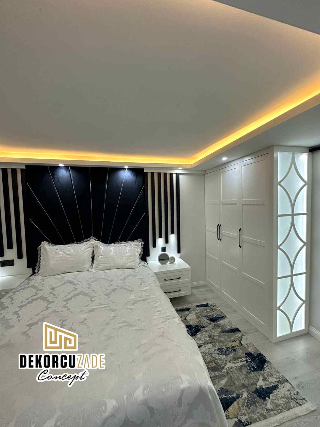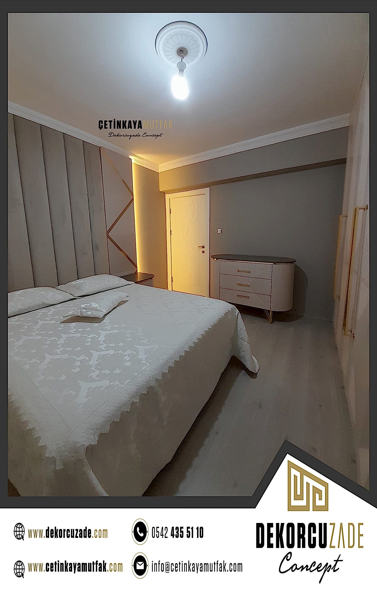 Yatak odalarınızın dekorasyonunu modern trendler ve kişisel zevklerinize uygun şekilde gerçekleştiriyoruz. DekorcuZade Concept olarak, yatak odalarınızı estetik ve fonksiyonel hale getirmek için çeşitli dekorasyon çözümleri sunuyoruz. Mobilya, aydınlatma, aksesuarlar ve renk seçimlerinde profesyonel ekibimizle size en uygun önerileri sunarak, hayalinizdeki yatak odasını gerçeğe dönüştürüyoruz. Ayrıca, kaliteli işçilik ve malzemelerle uzun süre kullanışlı ve keyfinize uygun üretimler yapmak için tasarım ve üretim kriterlerinden taviz vermiyoruz.