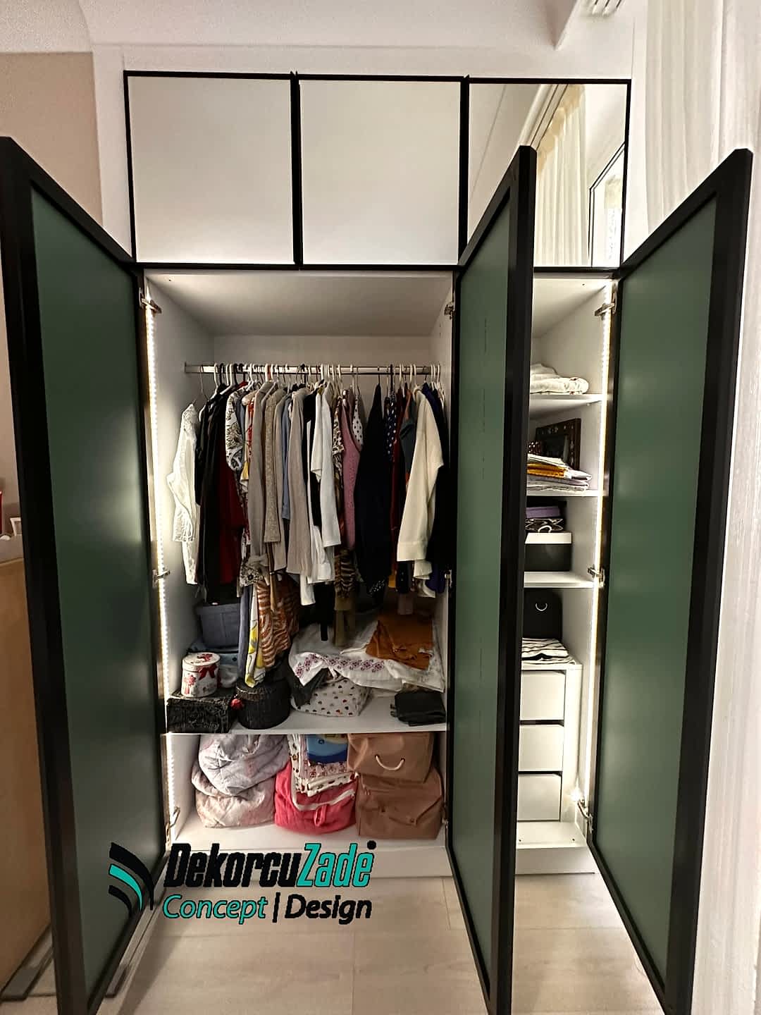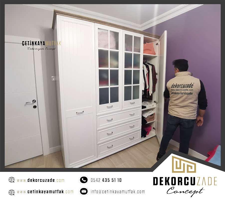 Gardolap ve yüklük dolapları, evlerinizde düzeni sağlamak ve daha fazla depolama alanı sunmak için ideal çözümler sunar. DekorcuZade olarak, gardolap ve yüklük dolaplarınızı estetik ve fonksiyonel hale getiriyoruz. Yüksek kaliteli malzemeler ve işçilik ile dayanıklı ve kullanışlı dolaplar üretiyoruz. İhtiyacınıza ve mekanınıza uygun özel ölçülerde dolaplar tasarlayıp üretiyoruz.