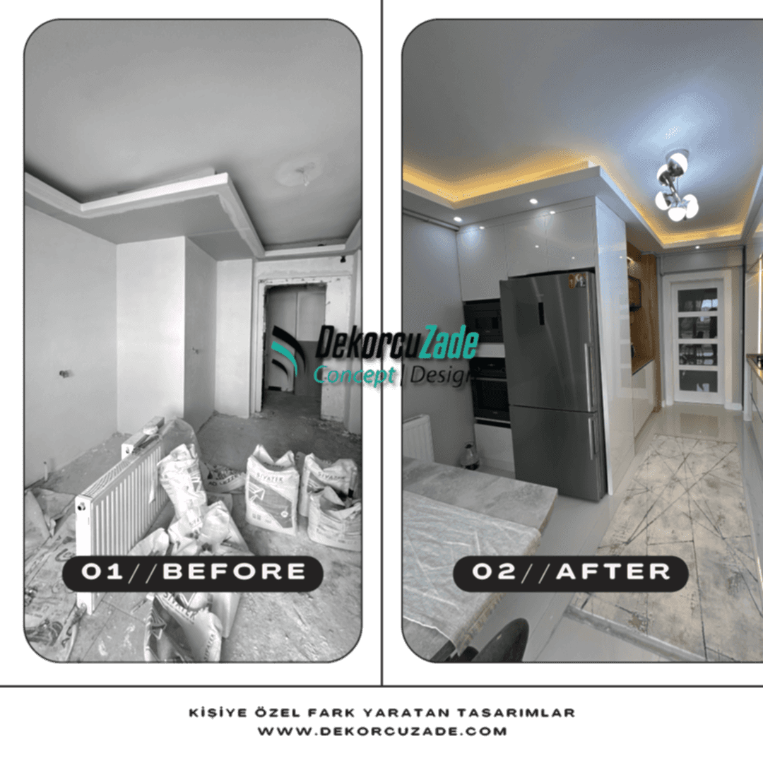 Dekorcuzade Konsept olarak, Ankara Batıkent Bizim Çizgi Sitesi’nde Hatice & Kubilay Ük ailesinin evini baştan sona yenilediğimiz bu özel projeyi gururla sunuyoruz. Bu dönüşüm yolculuğunda bize duydukları güven için kendilerine içtenlikle teşekkür eder, yenilenen yuvalarında sağlık, huzur ve keyifle uzun yıllar oturmalarını dileriz.