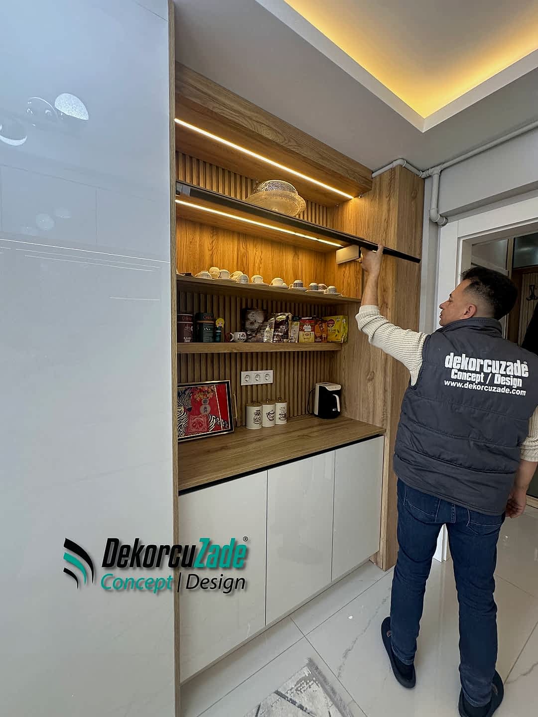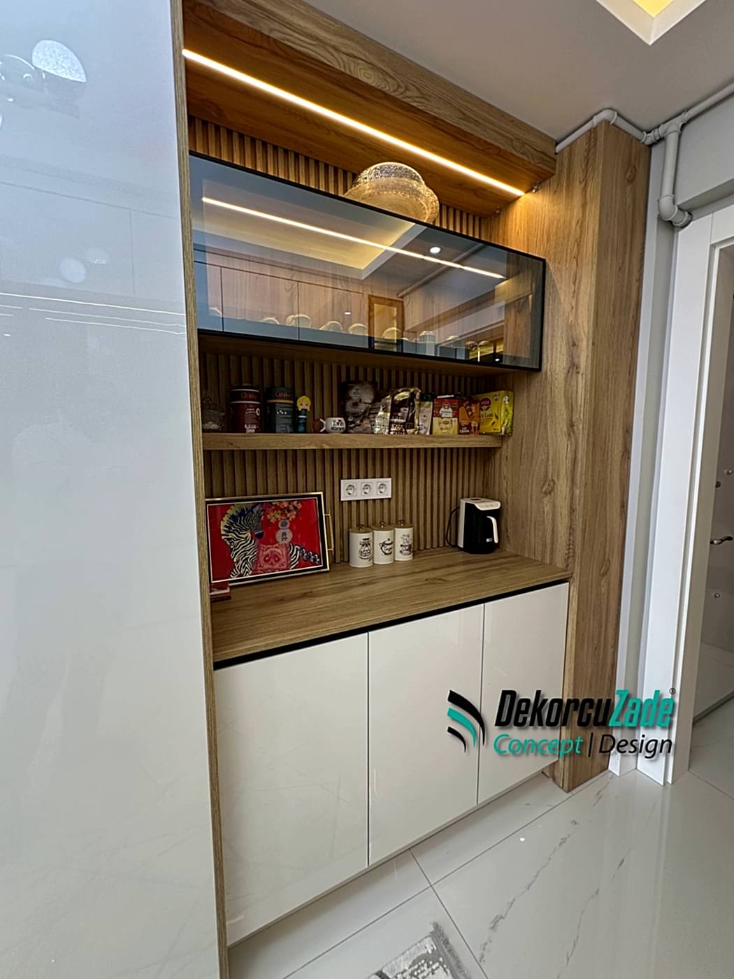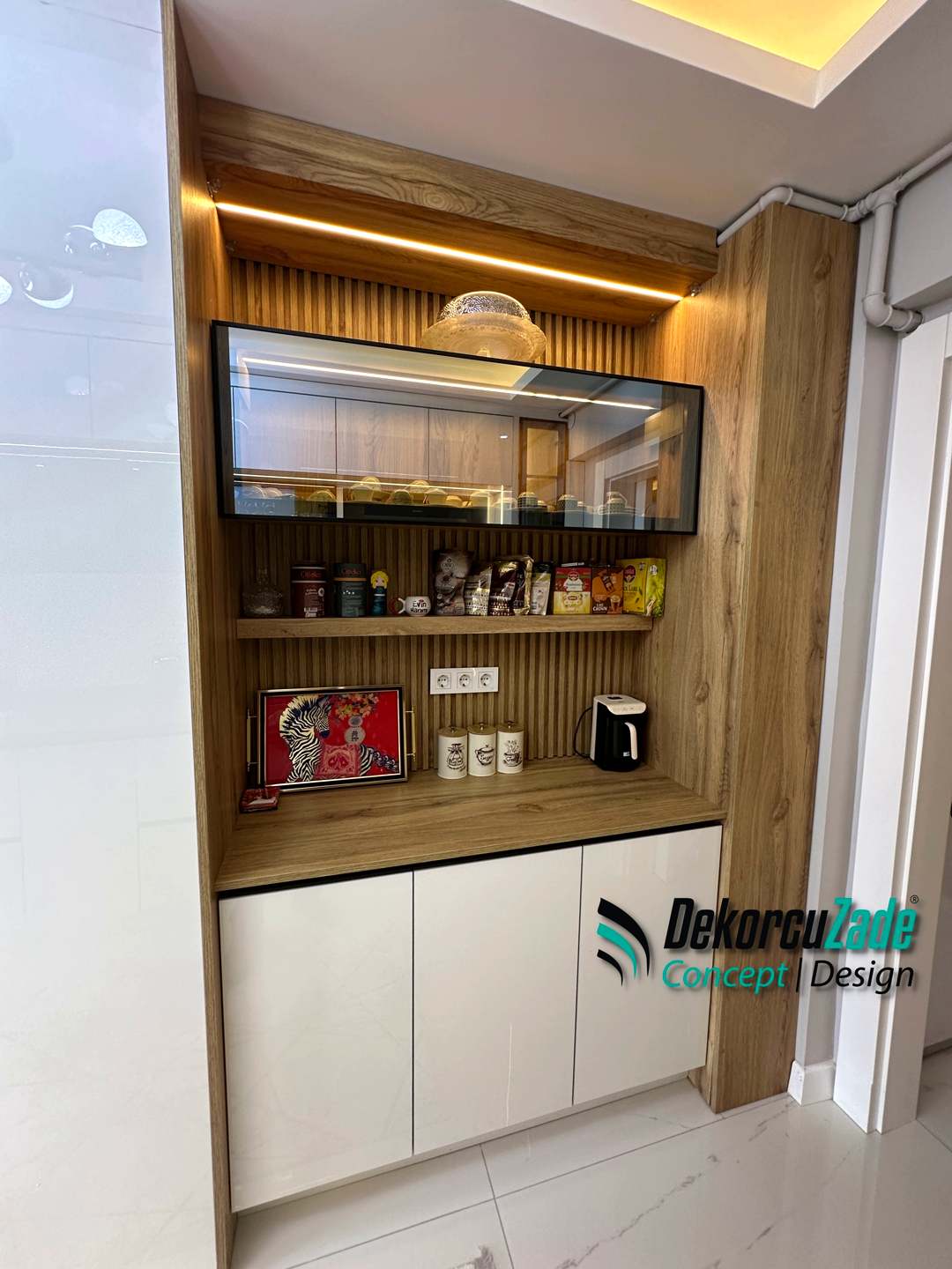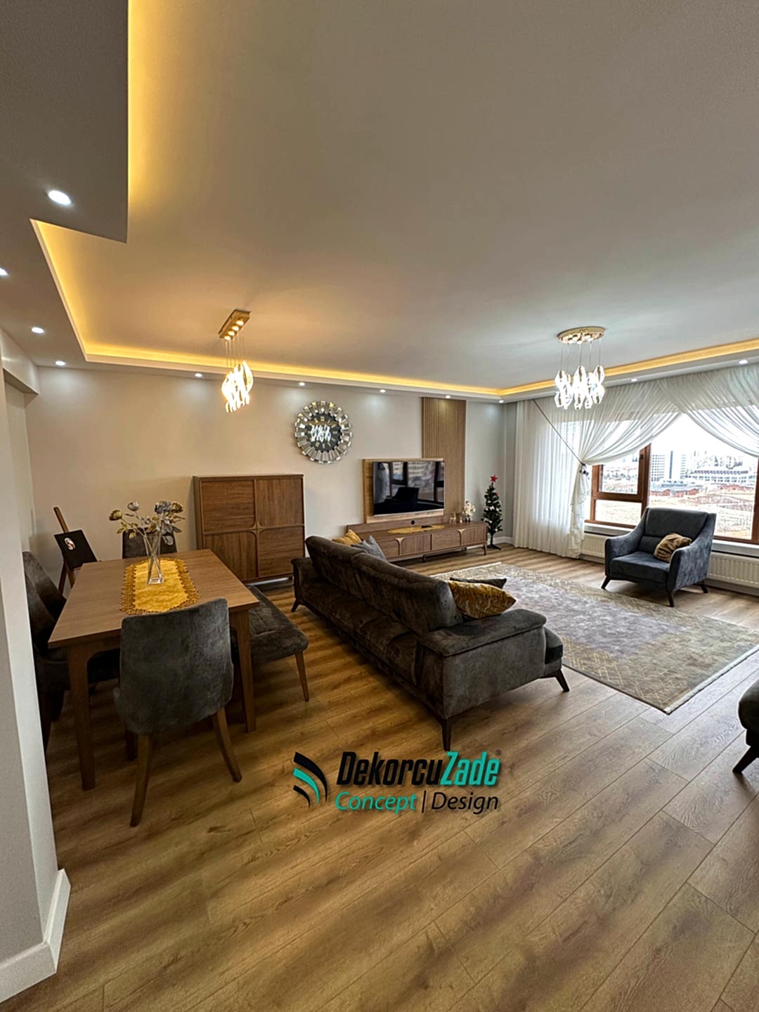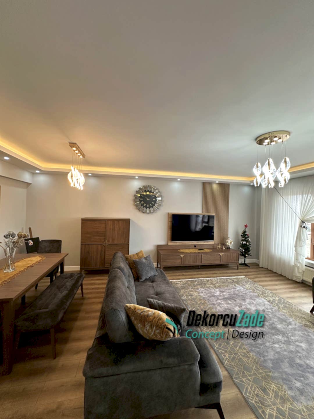 - %100 Yerli Üretim ve Özel Tasarım: Evdeki tüm mobilya ve dolap grupları, DekorcuZade’nin Ankara’daki modern üretim tesislerinde, %100 yerli üretimle ve evin her köşesine özel ölçülerde tasarlandı. Her bir parça, yılların verdiği tecrübe ve usta işçilikle hayat buldu.