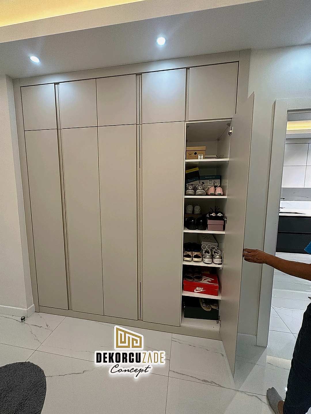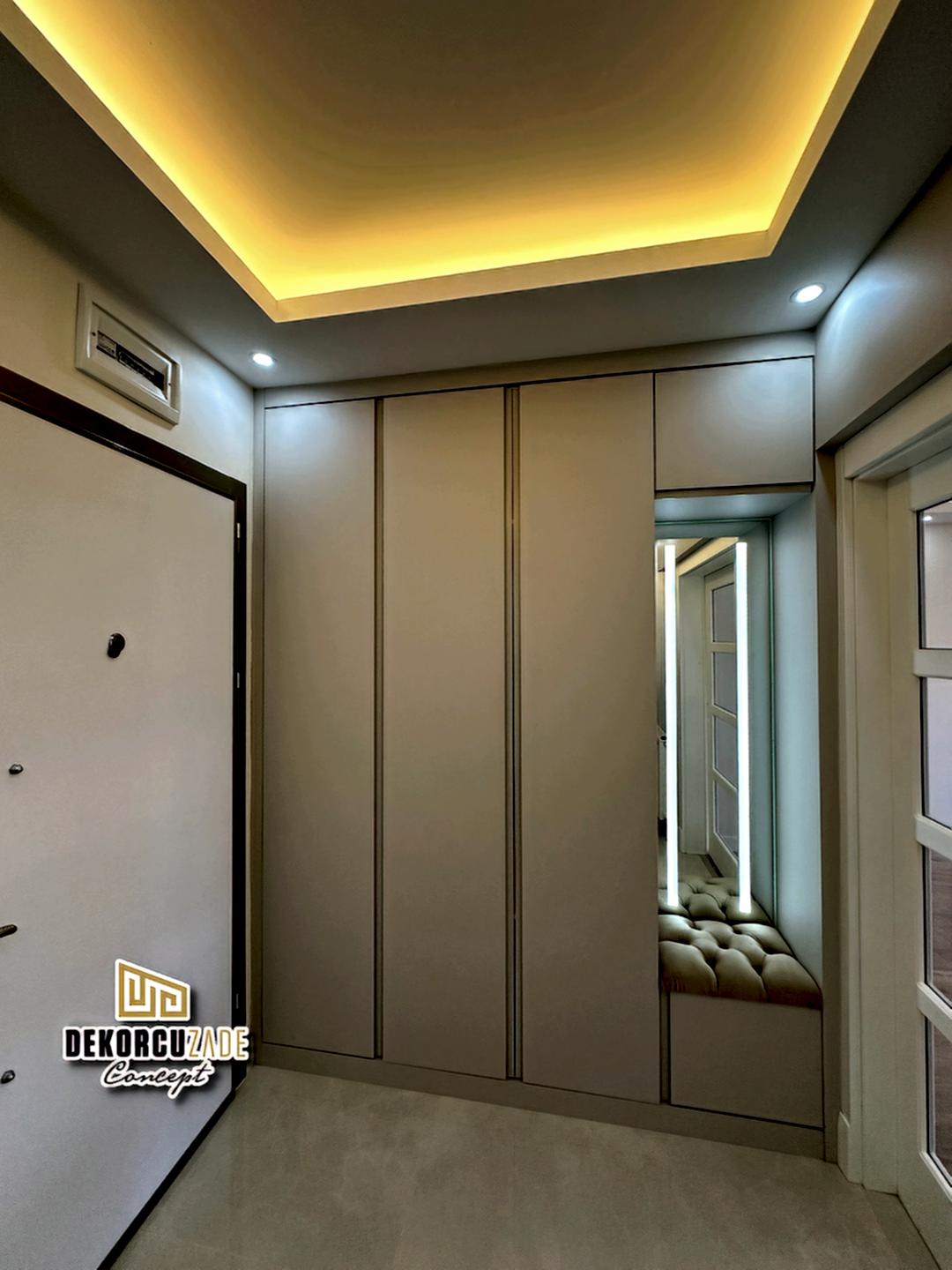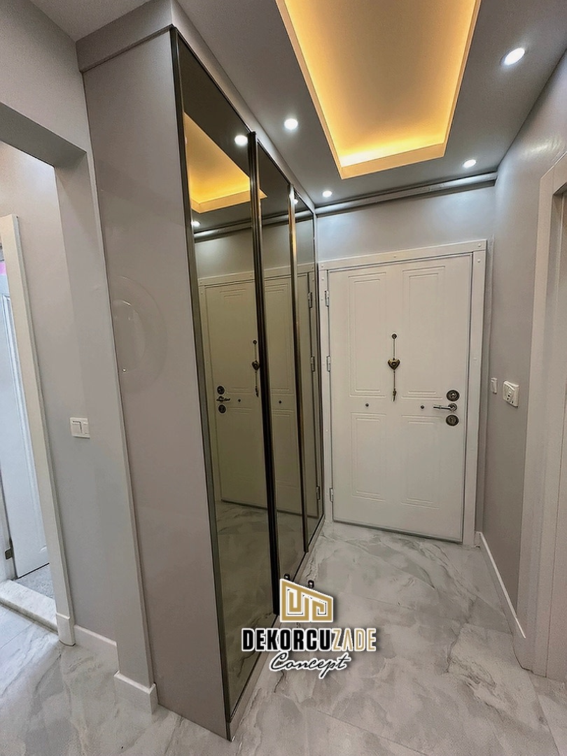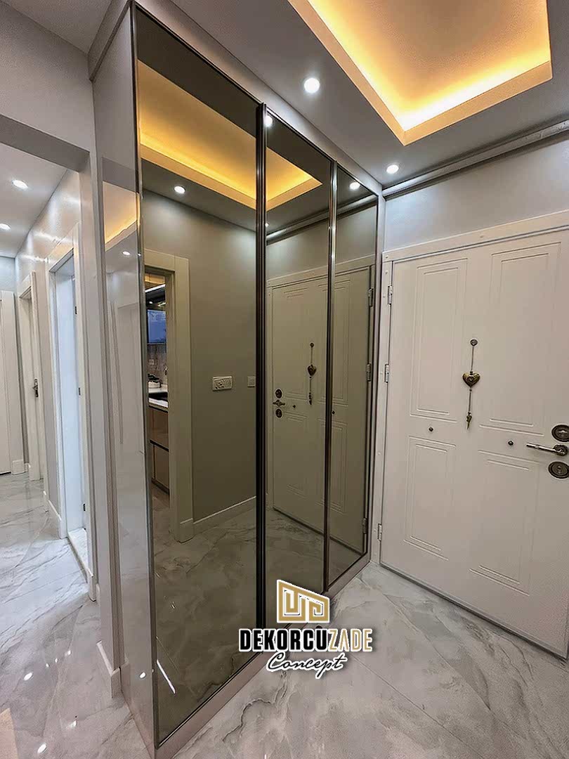 Dekorcuzade olarak, hazır dolap satmıyoruz. Tüm portmanto ve yüklük dolapları, müşterilerimizin ölçü ve ihtiyaçlarına göre özel olarak tasarlanmaktadır. Her model, projeye ve beğenilen tasarıma göre kişiye özel olarak üretilir.