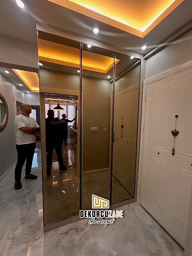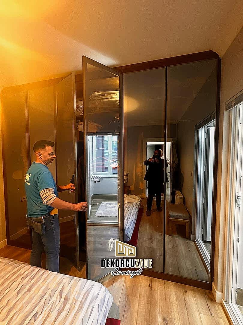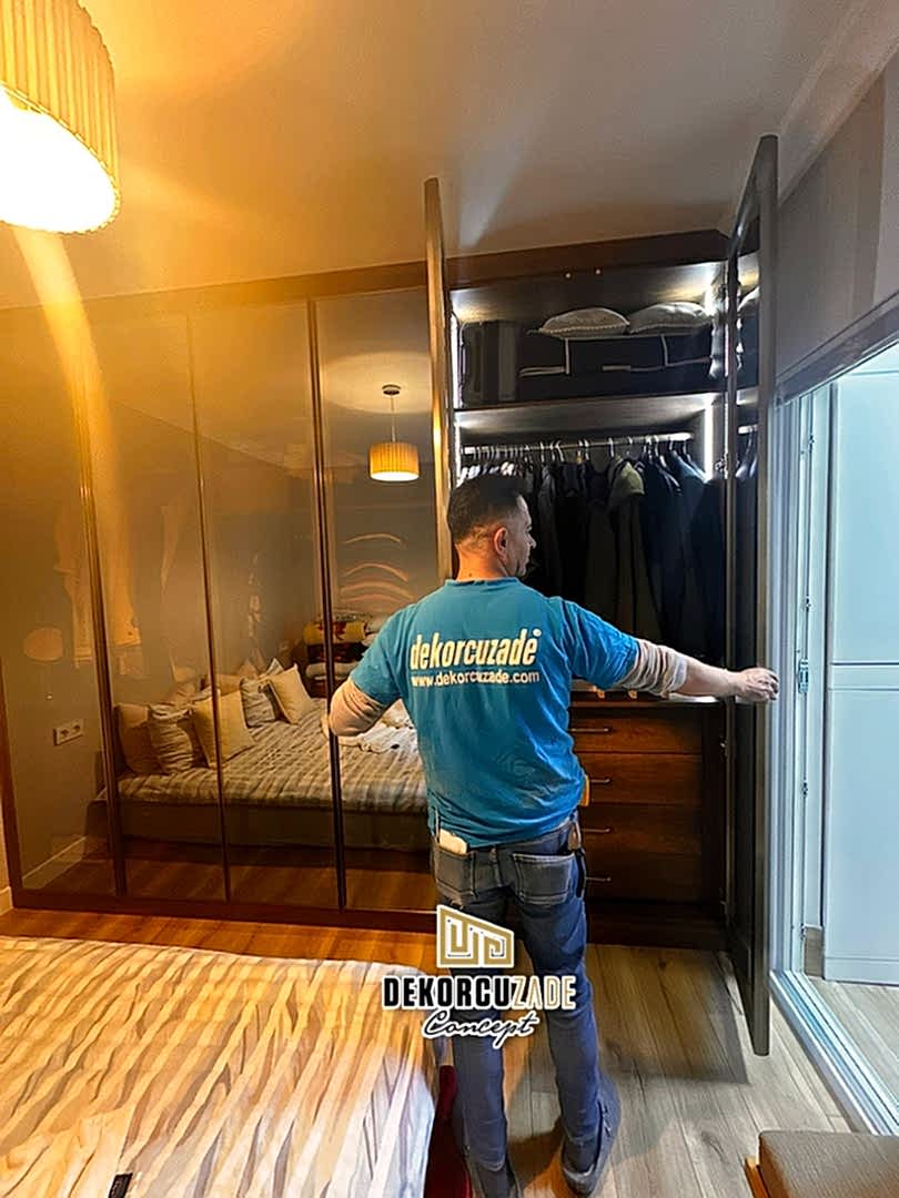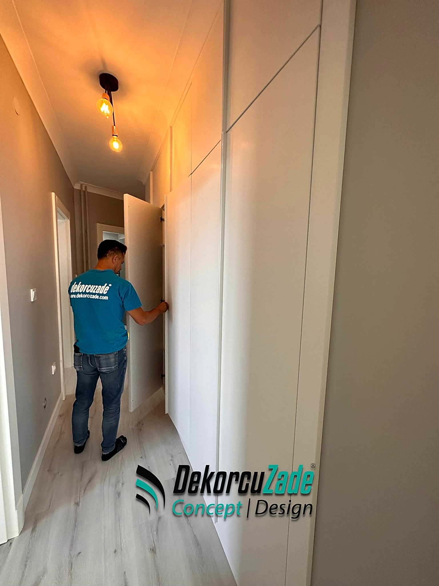 Dekorcuzade olarak, hazır dolap satmıyoruz. Tüm gömme dolap ve yüklük dolapları, müşterilerimizin ölçü ve ihtiyaçlarına göre özel olarak tasarlanmaktadır. Her model, projeye ve beğenilen tasarıma göre kişiye özel olarak üretilir.
