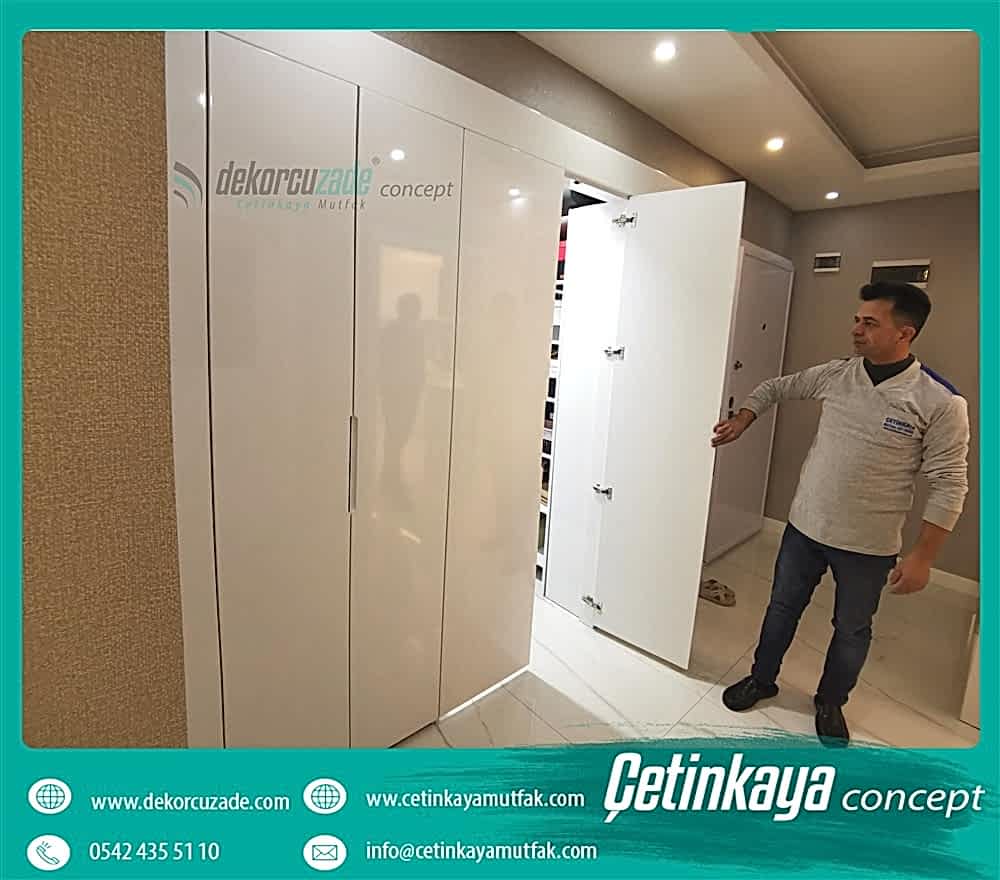 Öncelikle, şunun bilinmesini isteriz: DekorcuZade hazır dolap satmıyor. Burada gördüğünüz tüm ürünler ölçüye ve beğenilen modele göre, projeye göre kişiye özel tasarlanmış modellerdir. Bu nedenle, herhangi bir modeli seçip “Bu kaç para?” diye sormak yerine, lütfen ölçülerinizi de gönderin ki size daha iyi yardımcı olabilelim. Teşekkür ederiz.
