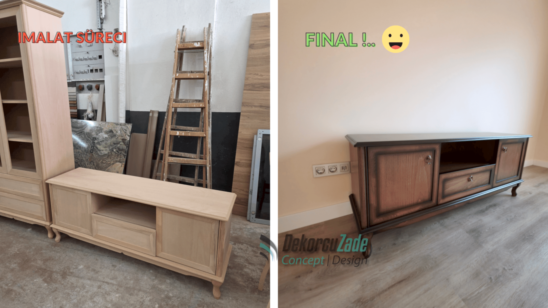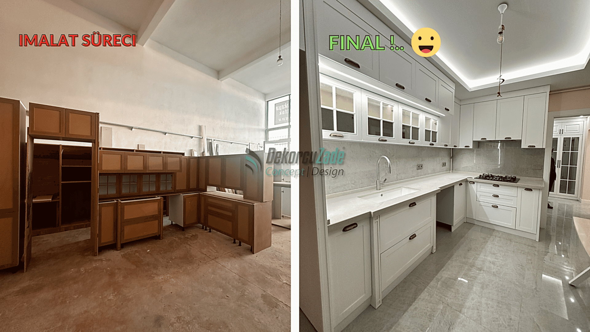Dekorcuzade Concept, Ankara ve çevresinde anahtar teslim ev tadilatı, iç dekorasyon, mutfak-banyo yenileme ve özel üretim mobilya alanlarında profesyonel hizmet sunmaktadır.